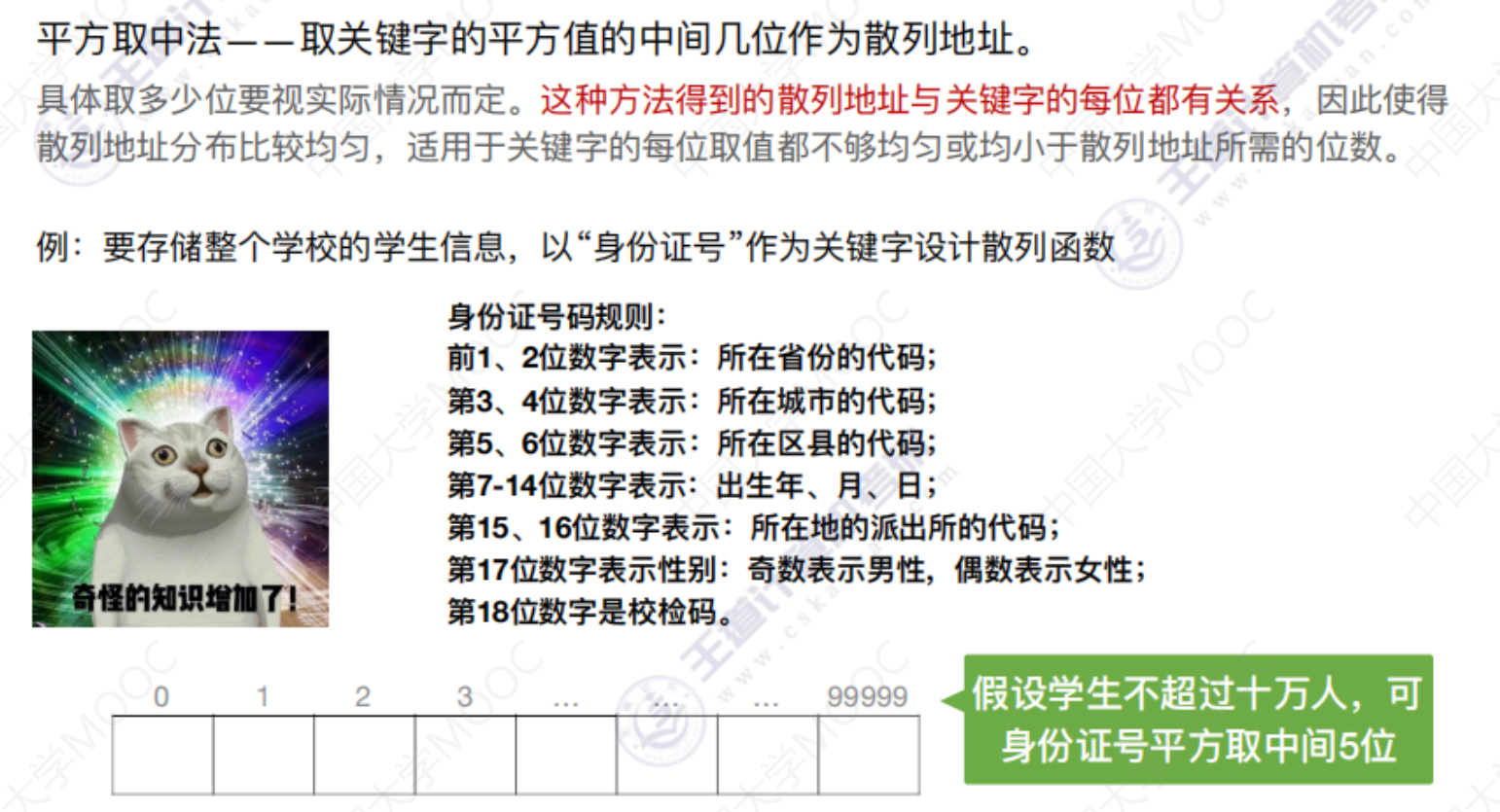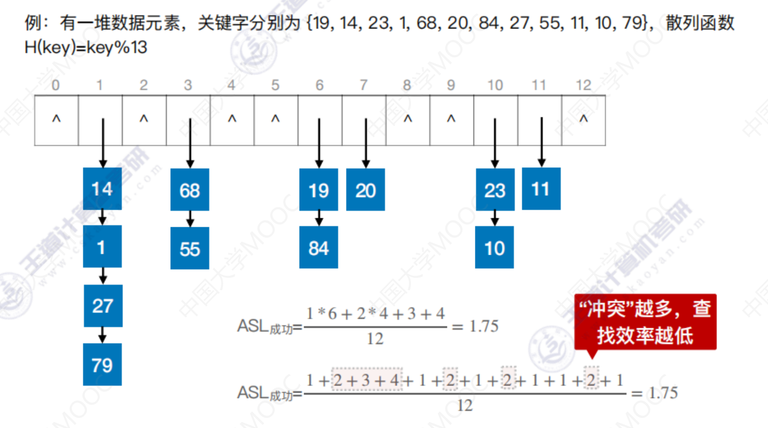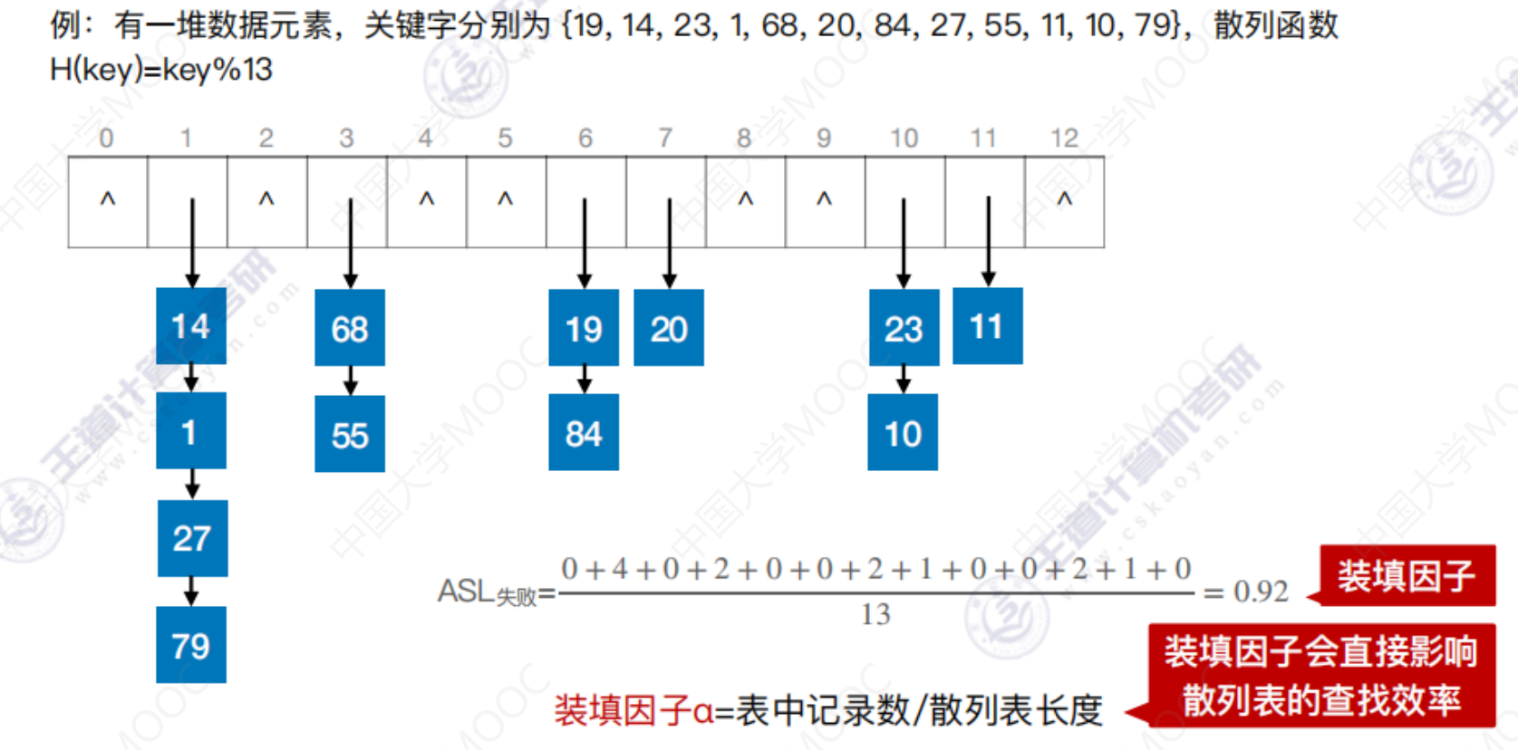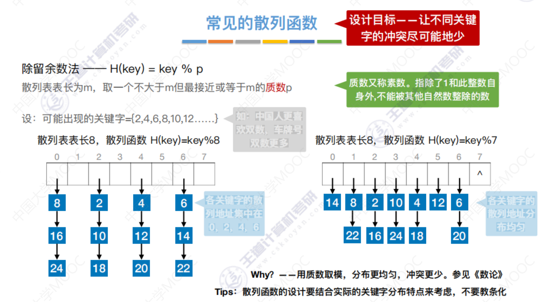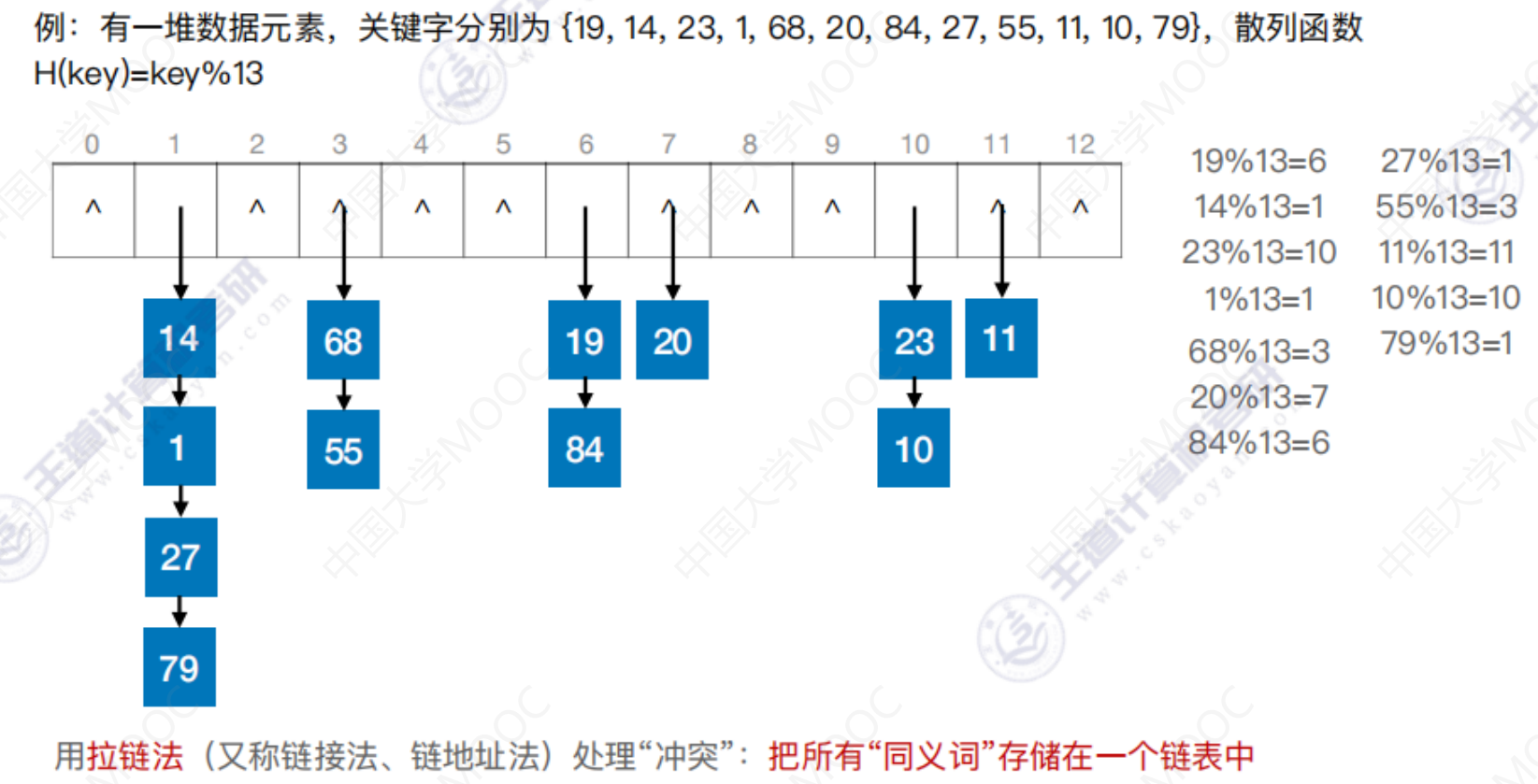 散列查找 散列查找散列表 处理冲突的方法—拉链法 散列查找 装填因子越大,表示装填的记录越“满”,发生冲突的可能性越大,反之发生冲突的可能性越小。 常见的散列函数 除留余数法–H(key) = key % p 直接定址法 –> H(key) = key 或 H(key) = a*key + b 数字分析法 –> 选取数码分布较为均匀的若干位作为散列地址 平方取中法 –> 取关键字的平方值的中间几位作为散列地址。 处理冲突的方法—-拉链法 处理冲突的方法—-开放定址法 删除操作 总结 数据结构 > 第七章 > 散列表 散列查找 https://lzyjx.github.io.git/2023/05/21/散列查找/ 作者 六只羊 发布于 2023年5月21日 许可协议 数据库 上一篇 B+树 下一篇